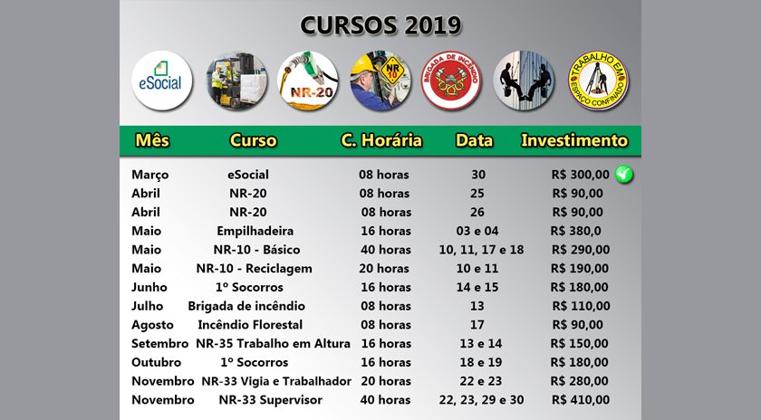 Os conteúdos abordados conforme determina a Norma Regulamentadora 33, foram: